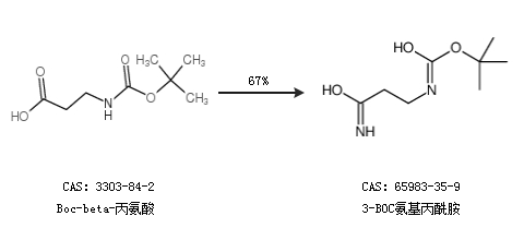 1.通过Boc-beta-丙氨酸合成3-BOC氨基丙酰胺,收率约67%;