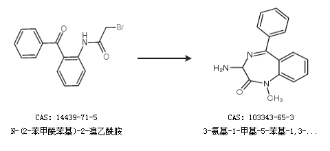 1.通过N-(2-苯甲酰苯基)-2-溴乙酰胺合成3-氨基-1-甲基-5-苯基-1,3-二氢苯并[e][1,4]二氮杂烷-2-酮
