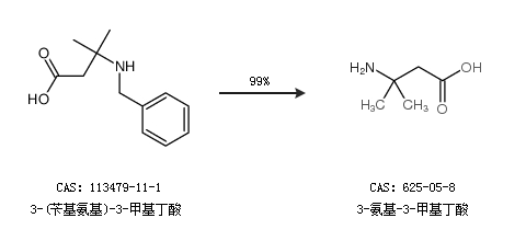 1.通过3-(苄基氨基)-3-甲基丁酸合成3-氨基-3-甲基丁酸,收率约99%;