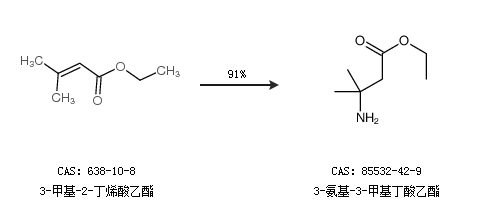 1.通过3-甲基-2-丁烯酸乙酯合成3-氨基-3-甲基丁酸乙酯,收率约91%;