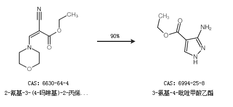 2.通过2-氰基-3-(4-吗啉基)-2-丙烯酸乙酯合成3-氨基-4-吡唑甲酸乙酯,收率约90%;