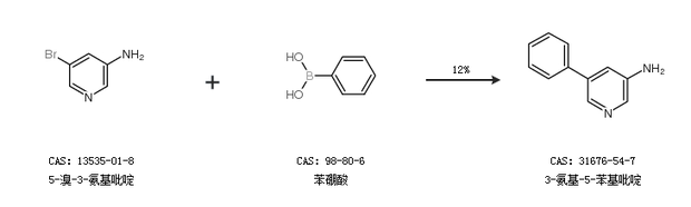 1.通过5-溴-3-氨基吡啶和苯硼酸合成3-氨基-5-苯基吡啶,收率约12%;