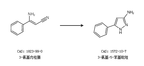 2.通过3-氨基肉桂腈合成3-氨基-5-苯基吡唑
