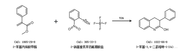 1.通过2-苯基丙烯酸甲酯和2-硝基重氮苯四氟硼酸盐合成3-苯基-3,4-二氢喹啉-2(1h)-酮,收率约70%;