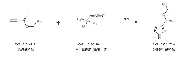 1.通过丙炔酸乙酯和三甲基硅烷化重氮甲烷合成3-吡唑甲酸乙酯,收率约93%;