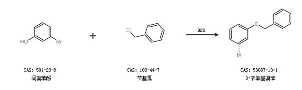 1.通过间溴苯酚和苄基氯合成3-苄氧基溴苯,收率约92%;