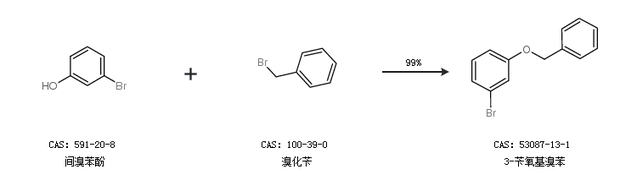 2.通过间溴苯酚和溴化苄合成3-苄氧基溴苯,收率约99%;