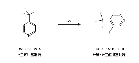 1.通过4-三氟甲基吡啶合成3-碘-4-三氟甲基吡啶,收率约77%;