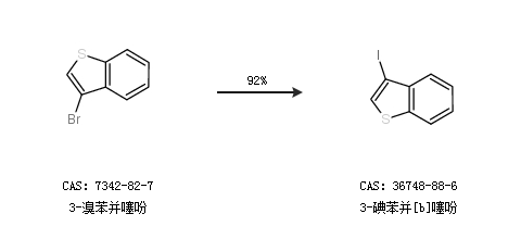 1.通过3-溴苯并噻吩合成3-碘苯并[b]噻吩,收率约92%;