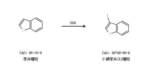 2.通过苯并噻吩合成3-碘苯并[b]噻吩,收率约58%;