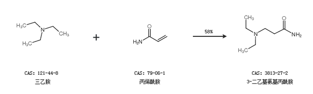 2.通过三乙胺和丙烯酰胺合成3-二乙基氨基丙酰胺,收率约58%;
