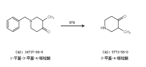 1.通过1-苄基-3-甲基-4-哌啶酮合成3-甲基-4-哌啶酮,收率约97%;