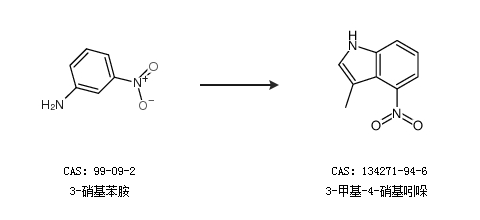 1.通过3-硝基苯胺合成3-甲基-4-硝基吲哚