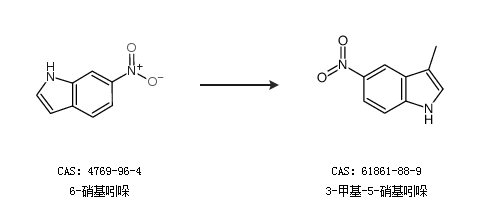 2.通过6-硝基吲哚合成3-甲基-5-硝基吲哚