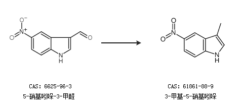 1.通过5-硝基吲哚-3-甲醛合成3-甲基-5-硝基吲哚