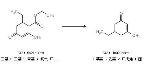 2.通过乙基 6-乙基-2-甲基-4-氧代-环hex-2-ene-1-羧酸合成3-甲基-5-乙基-2-环戊烯-1-酮
