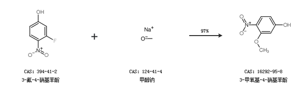 2.通过3-氟-4-硝基苯酚和甲醇钠合成3-甲氧基-4-硝基苯酚,收率约97%;