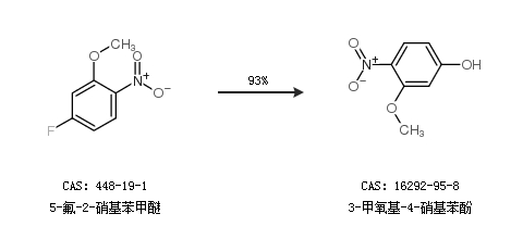 1.通过5-氟-2-硝基苯甲醚合成3-甲氧基-4-硝基苯酚,收率约93%;