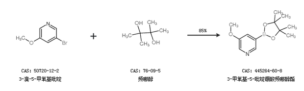 2.通过3-溴-5-甲氧基吡啶和频哪醇合成3-甲氧基-5-吡啶硼酸频哪醇酯,收率约85%;