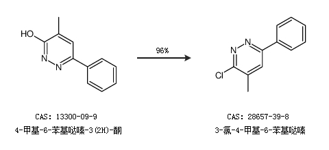 1.通过4-甲基-6-苯基哒嗪-3(2H)-酮合成3-氯-4-甲基-6-苯基哒嗪,收率约96%;