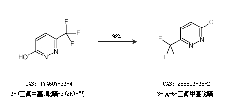 1.通过6-(三氟甲基)吡嗪-3(2H)-酮合成3-氯-6-三氟甲基哒嗪,收率约92%;