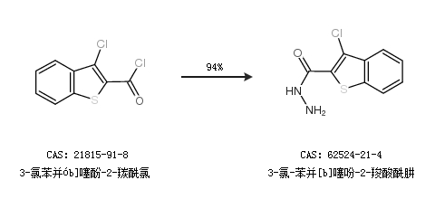 1.通过3-氯苯并ób]噻酚-2-羰酰氯合成3-氯-苯并[b]噻吩-2-羧酸酰肼,收率约94%;