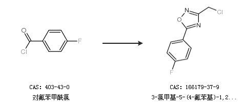 1.通过对氟苯甲酰氯合成3-氯甲基-5-(4-氟苯基)-1,2,4-噁二唑
