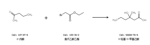 1.通过2-戊酮和溴代乙酸乙酯合成3-羟基-3-甲基己酸