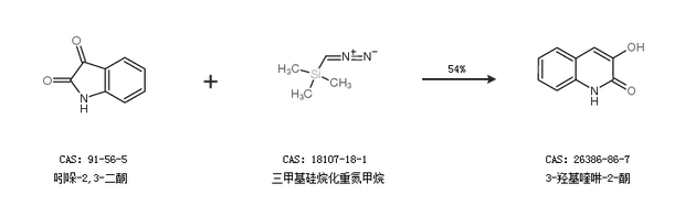 2.通过吲哚-2,3-二酮和三甲基硅烷化重氮甲烷合成3-羟基喹啉-2-酮,收率约54%;