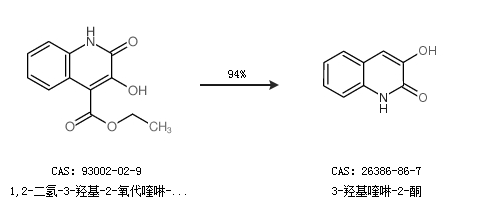 1.通过1,2-二氢-3-羟基-2-氧代喹啉-4-羧酸乙酯合成3-羟基喹啉-2-酮,收率约94%;