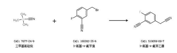 1.通过三甲基氰硅烷和3-氰基-4-氟苄溴合成3-氰基-4-氟苯乙腈