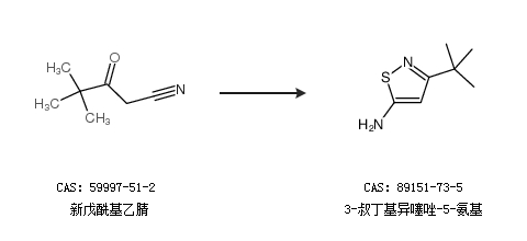1.通过新戊酰基乙腈合成3-叔丁基异噻唑-5-氨基