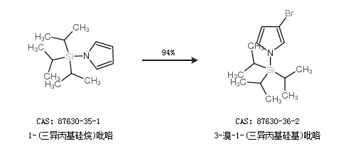 1.通过1-(三异丙基硅烷)吡咯合成3-溴-1-(三异丙基硅基)吡咯,收率约94%;