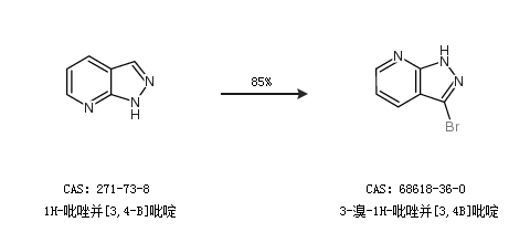 1.通过1H-吡唑并[3,4-B]吡啶合成3-溴-1H-吡唑并[3,4B]吡啶,收率约85%;