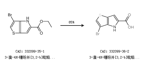 1.通过3-溴-4H-噻吩并[3,2-b]吡咯-5-羧酸乙酯合成3-溴-4H-噻吩并[3,2-b]吡咯-5-羧酸,收率约85%;