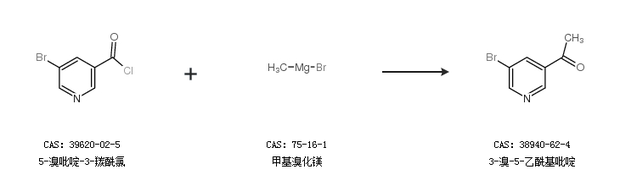 2.通过5-溴吡啶-3-羰酰氯和甲基溴化镁合成3-溴-5-乙酰基吡啶