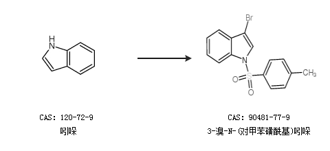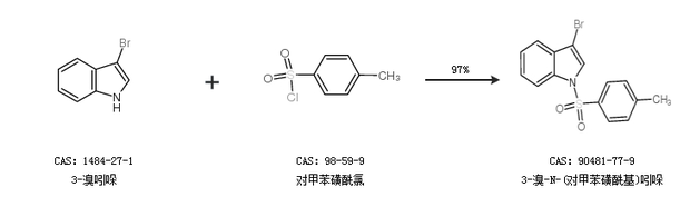 1.通过3-溴吲哚和对甲苯磺酰氯合成3-溴-N-(对甲苯磺酰基)吲哚,收率约97%;