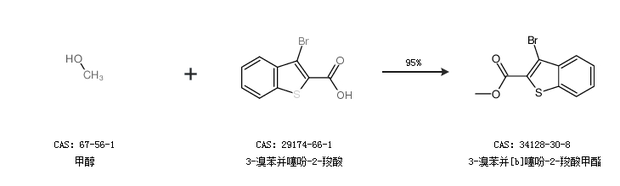 2.通过甲醇和3-溴苯并噻吩-2-羧酸合成3-溴苯并[b]噻吩-2-羧酸甲酯,收率约95%;