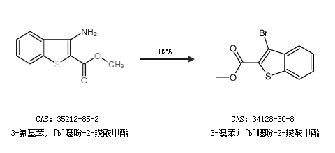 1.通过3-氨基苯并[b]噻吩-2-羧酸甲酯合成3-溴苯并[b]噻吩-2-羧酸甲酯,收率约82%;