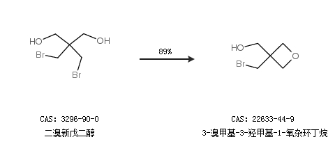 1.通过二溴新戊二醇合成3-溴甲基-3-羟甲基-1-氧杂环丁烷,收率约89%;