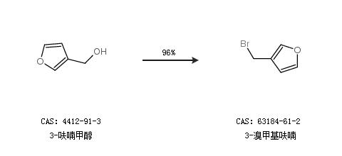 1.通过3-呋喃甲醇合成3-溴甲基呋喃,收率约96%;