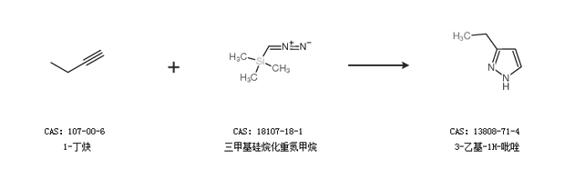 1.通过1-丁炔和三甲基硅烷化重氮甲烷合成3-乙基-1H-吡唑