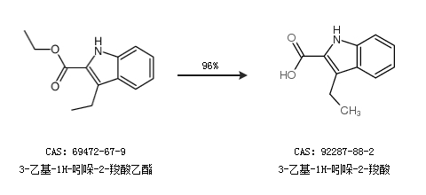 1.通过3-乙基-1H-吲哚-2-羧酸乙酯合成3-乙基-1H-吲哚-2-羧酸,收率约96%;