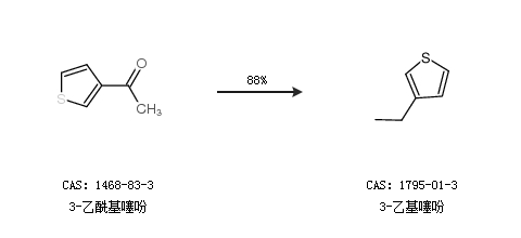 1.通过3-乙酰基噻吩合成3-乙基噻吩,收率约88%;