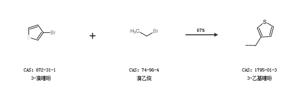 2.通过3-溴噻吩和溴乙烷合成3-乙基噻吩,收率约67%;