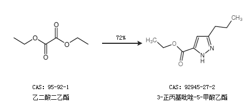 1.通过乙二酸二乙酯合成3-正丙基吡唑-5-甲酸乙酯,收率约72%;