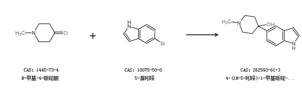 1.通过N-甲基-4-哌啶酮和5-溴吲哚合成4-(1H-5-吲哚)-1-甲基哌啶-4-醇