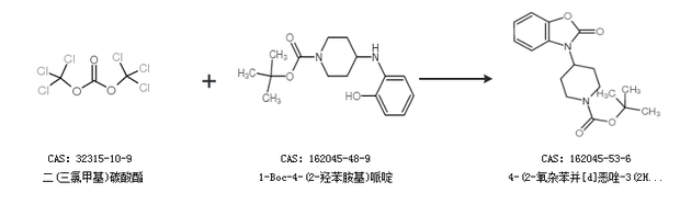 2.通过二(三氯甲基)碳酸酯和1-Boc-4-(2-羟苯胺基)哌啶合成4-(2-氧杂苯并[d]恶唑-3(2H)-基)哌啶-1-甲酸叔丁酯