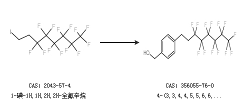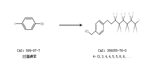 2.通过对溴碘苯合成4-(3,3,4,4,5,5,6,6,7,7,8,8,8-十三氟辛基)苄醇
