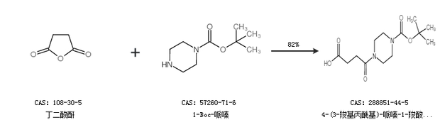 1.通过丁二酸酐和1-Boc-哌嗪合成4-(3-羧基丙酰基)-哌嗪-1-羧酸叔丁酯,收率约82%;